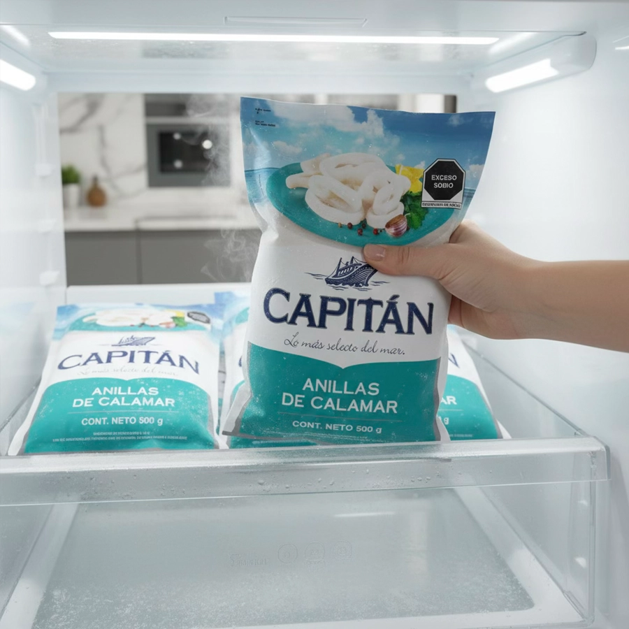Las Anillas de Calamar Capitán son el atajo perfecto para una botana crujiente o una cena ligera con toque mediterráneo. Vienen limpias y de tamaño uniforme para lograr cocciones exactas, ya sea en freidora de aire, sartén tradicional o salteadas al ajillo. Su perfil nutrimental es ideal para el día a día: por cada 100 g aportan alrededor de 16 g de proteína, apenas 1.4 g de grasa y unas ~92 kcal.