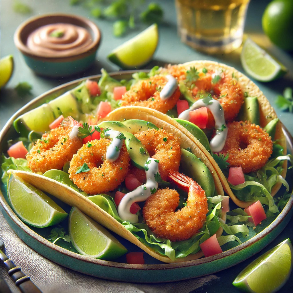 Tacos de Camarón Cocido Empanizado