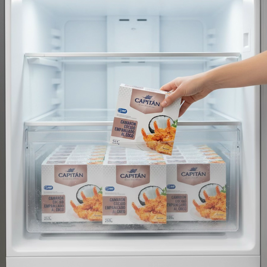 Como todos los productos Capitán, este camarón se elabora con cadena de frío controlada y procesos que cuidan la calidad para un resultado constante: piezas seleccionadas, empanizado que se mantiene adherido y sabor limpio del mar.