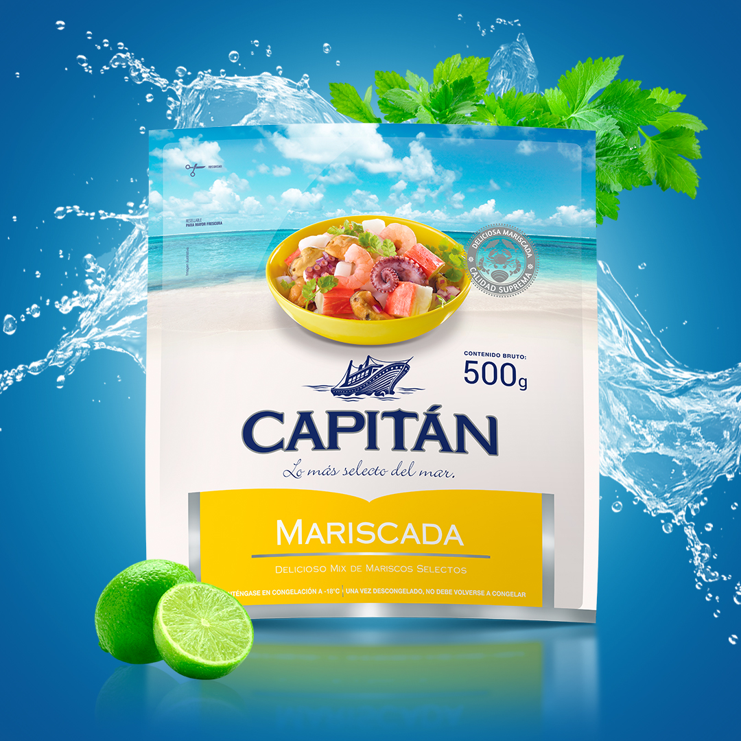 Todo el sabor del mar en una sola bolsa Mezcla selecta de mariscos lista para tus mejores recetas La Mariscada 500g de Capitán es una combinación ideal de mariscos selectos como camarón, calamar, pulpo y mejillones, lista para utilizarse en arroces, pastas, ceviches o guisos. Su versatilidad y sabor hacen de este producto una opción inteligente y deliciosa para quienes buscan practicidad sin sacrificar calidad. Disponible en Soriana, Chedraui y Casa Ley, es un producto indispensable en la cocina de mariscos casera y profesional. ¿Qué contiene la Mariscada Capitán? Todos los ingredientes vienen previamente cocidos y congelados para que solo tengas que descongelar y usar. Beneficios de consumir Mariscada Una mezcla balanceada y funcional para platillos saludables y sabrosos. Calidad Capitán garantizada Capitán te ofrece lo más selecto del mar en cada bocado. ¿Cómo puedes preparar la Mariscada 500g? Receta 1: Arroz con mariscos estilo casero Ingredientes: Preparación: Presentación: Sirve caliente en plato hondo con perejil picado y rodajas de limón. Receta 2: Ceviche mixto con mariscada Ingredientes: Preparación: Presentación: Sirve frío en copas o tostadas, decorado con hojas de cilantro y rodajas de limón. Conclusión: variedad, nutrición y sabor en un solo empaque La Mariscada 500g de Capitán es la solución perfecta para quienes desean preparar recetas marinas completas y deliciosas sin complicarse. Con ingredientes ya cocidos y listos para usar, puedes disfrutar de platillos frescos, versátiles y nutritivos en minutos. Encuentra este mix premium en Soriana, Chedraui y Casa Ley.