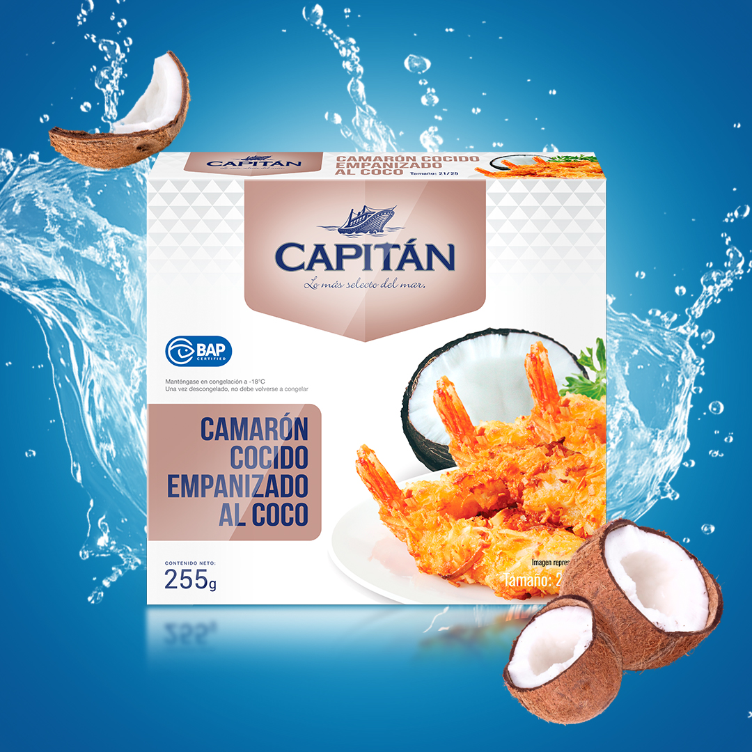 Sabor Tropical con la Calidad de Capitán Una botana crujiente con un toque exótico El camarón cocido empanizado al coco de Capitán combina lo mejor del mar con el sabor dulce y crujiente del coco rallado. Su empanizado especial aporta una textura dorada y un contraste irresistible con el interior jugoso. Ya viene precocido, listo para hornear o freír en solo minutos. Disponible en presentación de 255g, es perfecto para entradas, platillos tropicales o para darle un giro divertido a tus reuniones. Lo encuentras en Soriana, Chedraui y Casa Ley. ¿Por qué elegir camarón empanizado al coco? Perfecto para sorprender a tus invitados o disfrutar de algo especial en casa. Beneficios del camarón como ingrediente principal Incluso empanizado, sigue siendo una opción más nutritiva frente a botanas comerciales. Calidad garantizada por Capitán Capitán es símbolo de sabor confiable y práctico desde el mar hasta tu mesa. ¿Cómo puedes servirlo? Receta 1: Camarones al coco con dip de piña y chile Ingredientes: Preparación: Presentación: Sirve sobre cama de lechuga con palillos y un pequeño bowl con la salsa al centro. Receta 2: Tacos tropicales de camarón al coco Ingredientes: Preparación: Presentación: Decora con gajos de limón y salsa de mango al lado. Conclusión: sabor tropical, listo en minutos El camarón cocido empanizado al coco de Capitán es una opción sabrosa, diferente y práctica para sorprender a cualquiera. Ideal para eventos, cenas ligeras o antojos con estilo. Encuéntralo en Soriana, Chedraui y Casa Ley y agrega un toque tropical a tus comidas con lo más selecto del mar.
