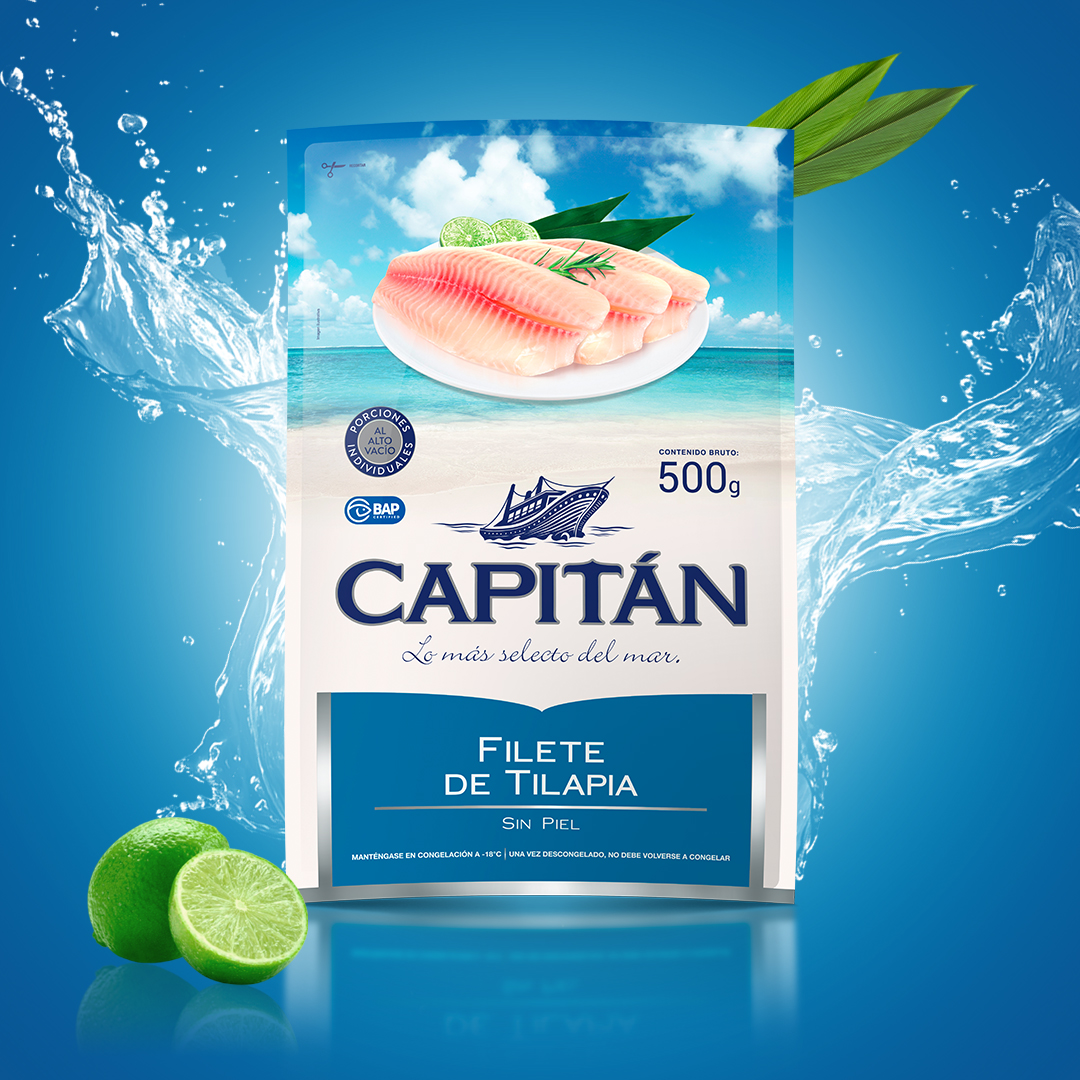 Descubre la calidad y frescura del filete de tilapia Capitán, ideal para tus recetas saludables y deliciosas. Este pescado blanco se destaca por su sabor suave y versatilidad en la cocina, perfecto para preparar a la parrilla, al horno o en ceviches. La tilapia Capitán se procesa bajo estrictos estándares sanitarios, garantizando un producto libre de conservadores y lleno de nutrientes esenciales. Disfruta de un filete jugoso y rico en proteínas, ideal para toda la familia. ¡Elige Capitán, el sabor del mar en tu mesa!