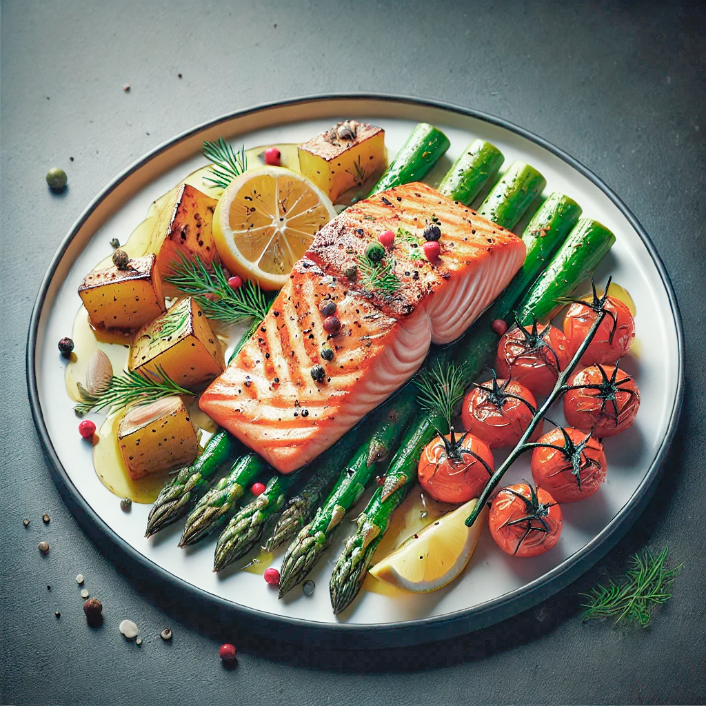 Salmón Atlántico a la Parrilla con Verduras Asadas