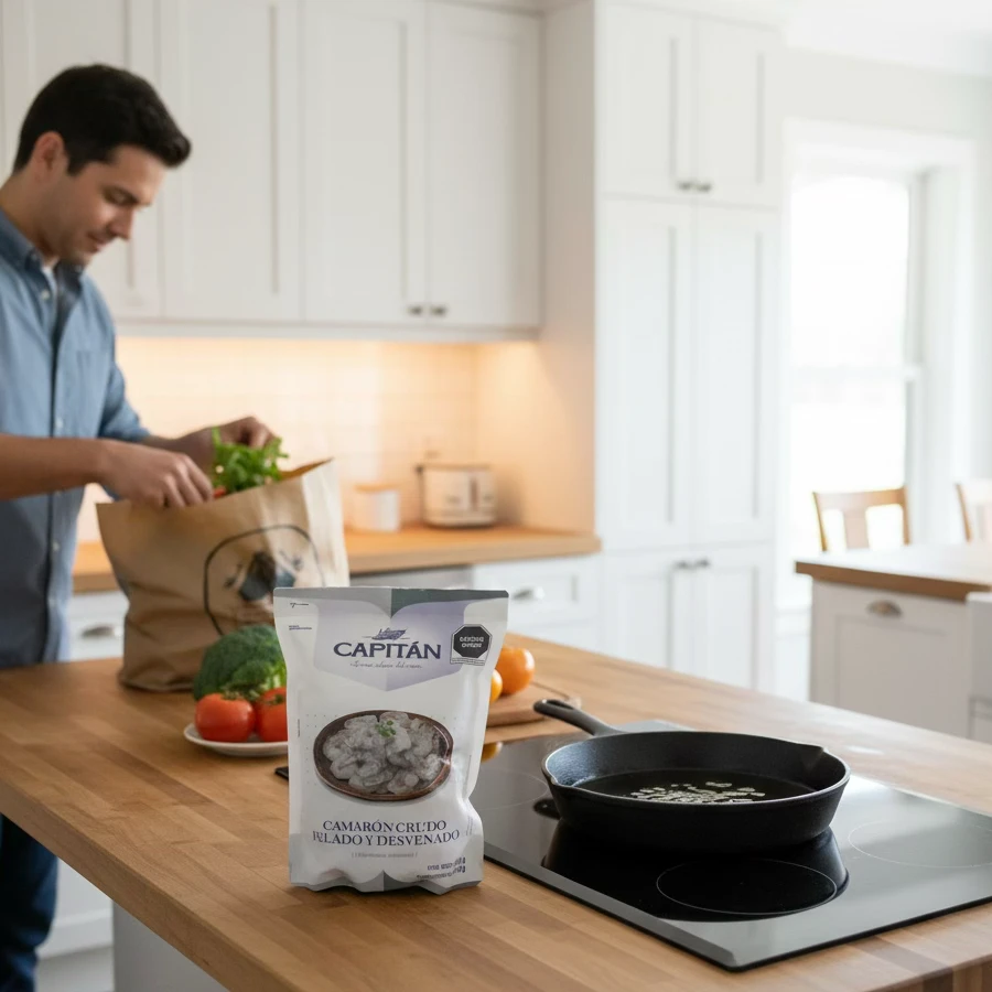 Con Capitán en tu despensa, preparar mariscos memorables es tan simple como abrir la bolsa: practicidad premium y sabor impecable, porque es lo más selecto del mar.